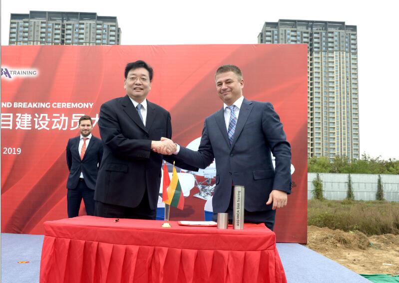 On the morning of 25th, October, the first aviation training project in central China ——BAA (China) started to construct . The project fills the gap of Henan aviation training industry and further improves the Henan civil aviation industry chain. Zhang Mingchao, Chairman of HNCA, Liu Jianbao, General Manager of HNCA, Gediminas, Chairman of Lithuania Avia Solutions Group, Vygaudas, Director of Lithuania Avia Solutions Group, Egle, General Manager of Lithuania BAA Training, Tomas, General Manager of AviaAM Financial Leasing (China) Co., Ltd., and Aurimas, General Manager of BAA (China) Aviation Training, laid the foundation for the project together.