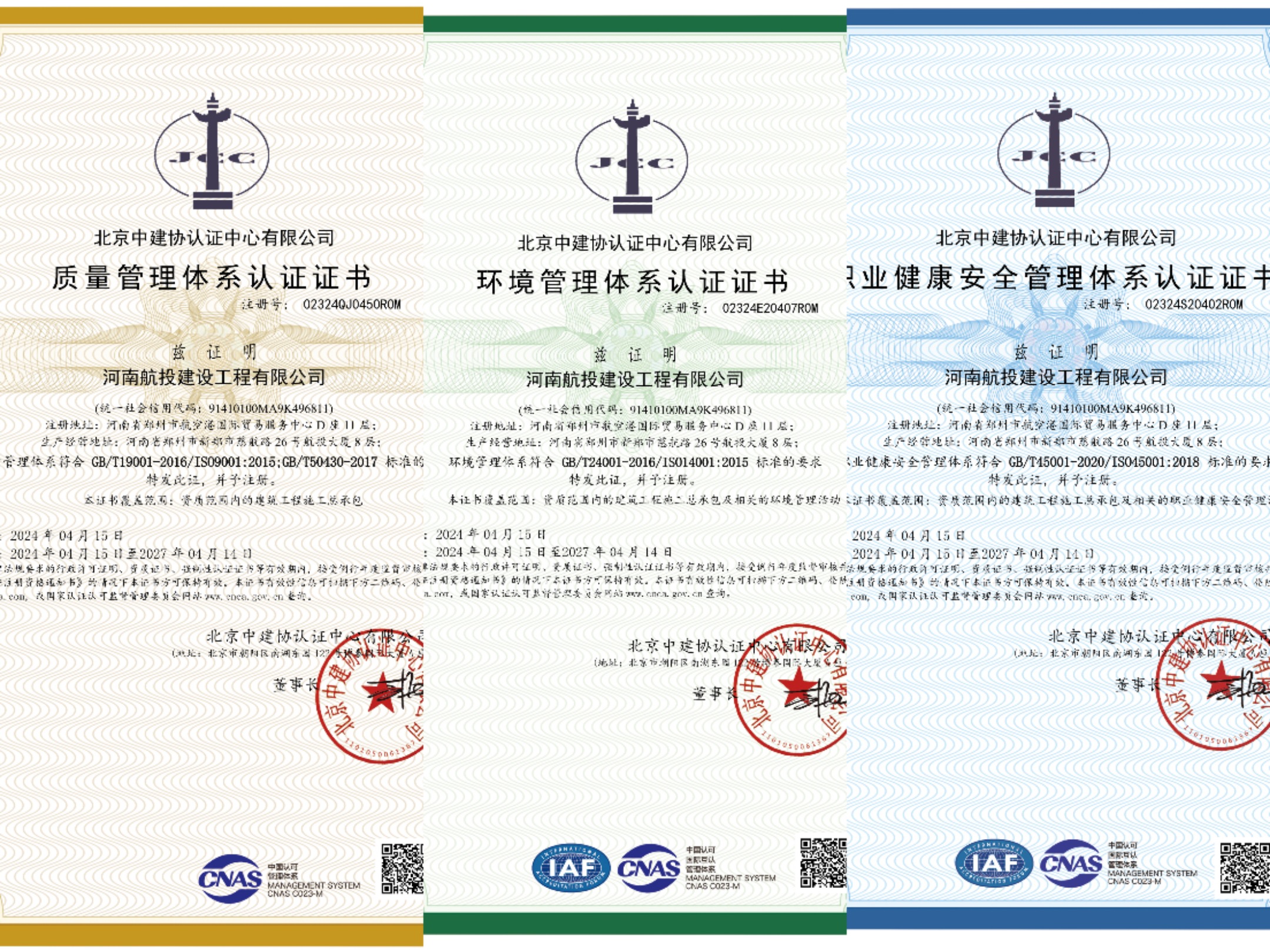 4月15日,河南航投建設(shè)工程有限公司(以下簡(jiǎn)稱航投建工)通過(guò)ISO9001質(zhì)量管理體系、ISO14001環(huán)境管理體系、ISO45001職業(yè)健康安全管理體系(以下簡(jiǎn)稱ISO三體系)認(rèn)證并獲得證書,這標(biāo)志著航投建工的規(guī)范化標(biāo)準(zhǔn)化管理邁上新臺(tái)階,為持續(xù)提升市場(chǎng)競(jìng)爭(zhēng)力、拓展合作新領(lǐng)域打下堅(jiān)實(shí)基礎(chǔ)。