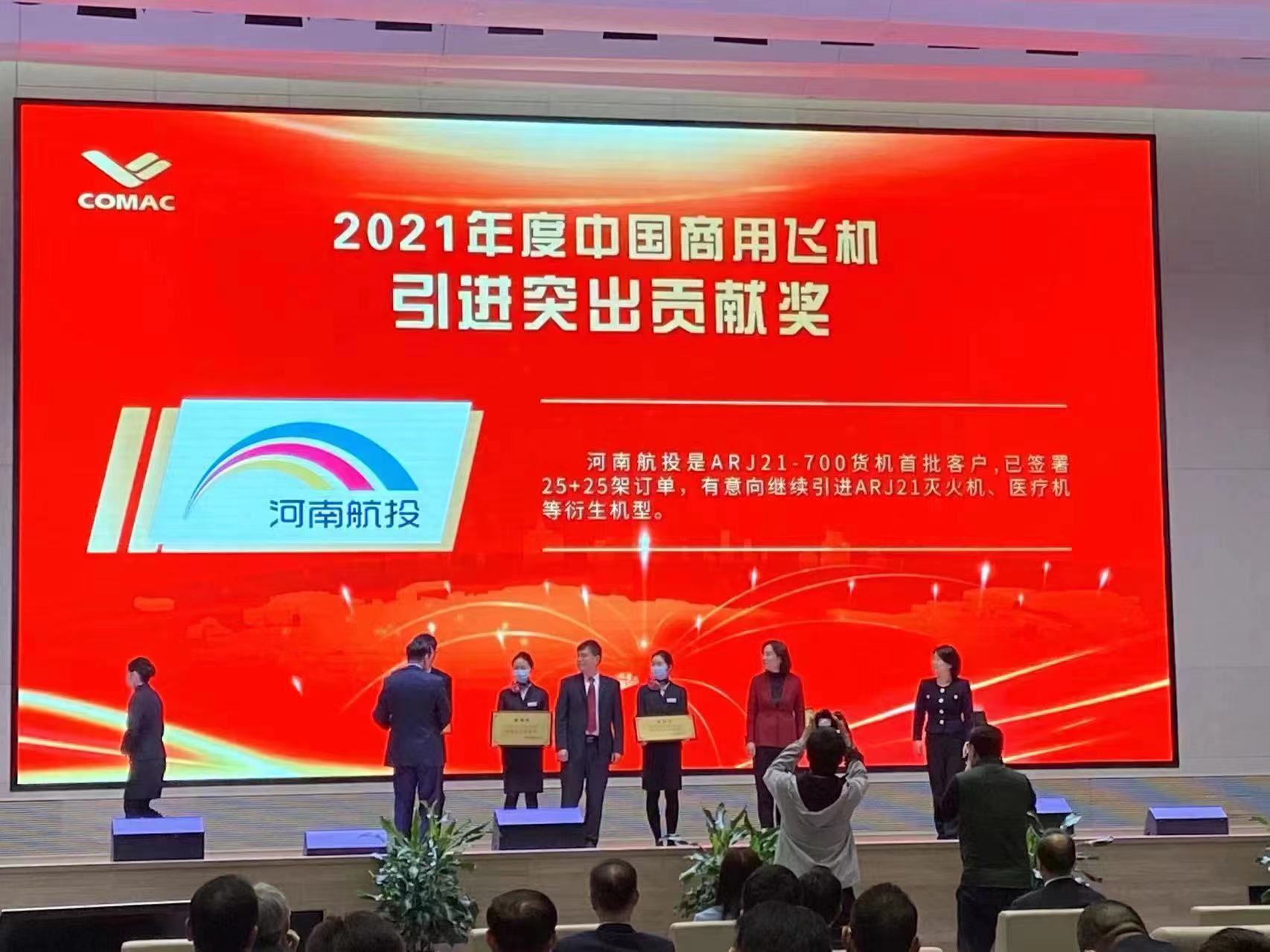 10月26日,中國商飛2022年度客戶大會(huì)在嘉興召開。會(huì)上頒發(fā)了第一屆中國商用飛機(jī)“翱翔獎(jiǎng)”。由中國商飛黨委書記、董事長(zhǎng)賀東風(fēng)為河南航投頒發(fā)“翱翔獎(jiǎng)—— 2021年度中國商用飛機(jī)引進(jìn)突出貢獻(xiàn)獎(jiǎng)”,這是中國商飛首次將國產(chǎn)商用飛機(jī)相關(guān)獎(jiǎng)項(xiàng)授予河南本土企業(yè),對(duì)國產(chǎn)貨機(jī)進(jìn)一步拓展市場(chǎng)具有重要意義。