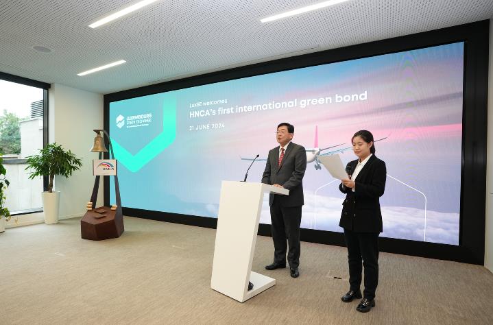 當?shù)貢r間6月21日上午,中豫航空集團以河南航投為主體發(fā)行的3年期人民幣境外債券上市儀式在盧森堡證券交易所舉行。這是中國企業(yè)在歐洲發(fā)行的首支支持可持續(xù)航空燃料(SAF)的綠色債券,也是河南企業(yè)發(fā)行的首支離岸人民幣綠色債券,鄭盧“空中絲路”資金融通實現(xiàn)新突破。