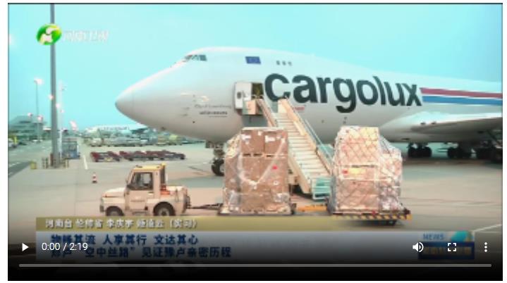 河南航投盧森堡項(xiàng)目管理部總經(jīng)理 史彬彬:這張照片是鄭州-盧森堡空“中絲綢之路”的貨運(yùn)量突破了100萬噸,中方的投資收益超過100億元,實(shí)現(xiàn)了雙百這樣一個(gè)答卷。這張照片是我們當(dāng)時(shí)客運(yùn)航線首飛,盧森堡的駐華大使,他搭乘了這條首飛航線回國(guó)去述職。