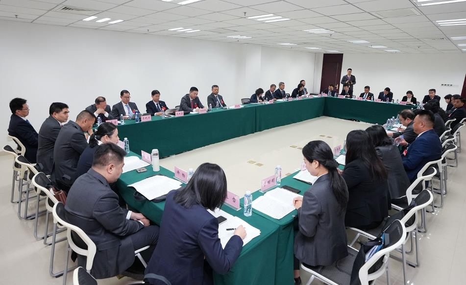 集團黨委書記、董事長張明超代表集團黨委向大會作報告,與會代表在現(xiàn)場認真聆聽。